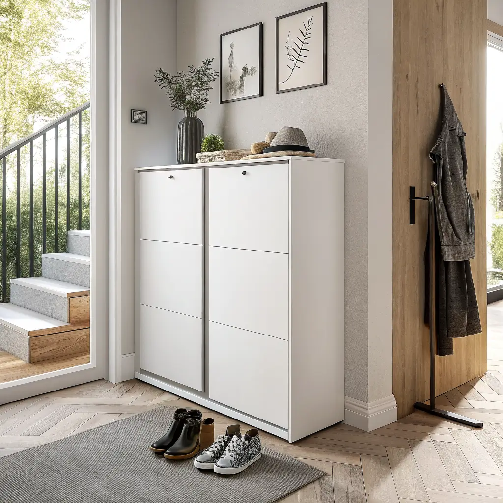 Modern minimalist shoe cabinets strip away decorative excess to focus on clean lines and maximum function. These sleek designs make small entryways feel larger rather than cluttered.