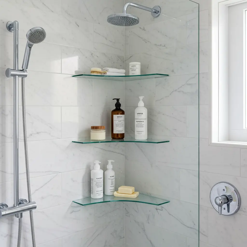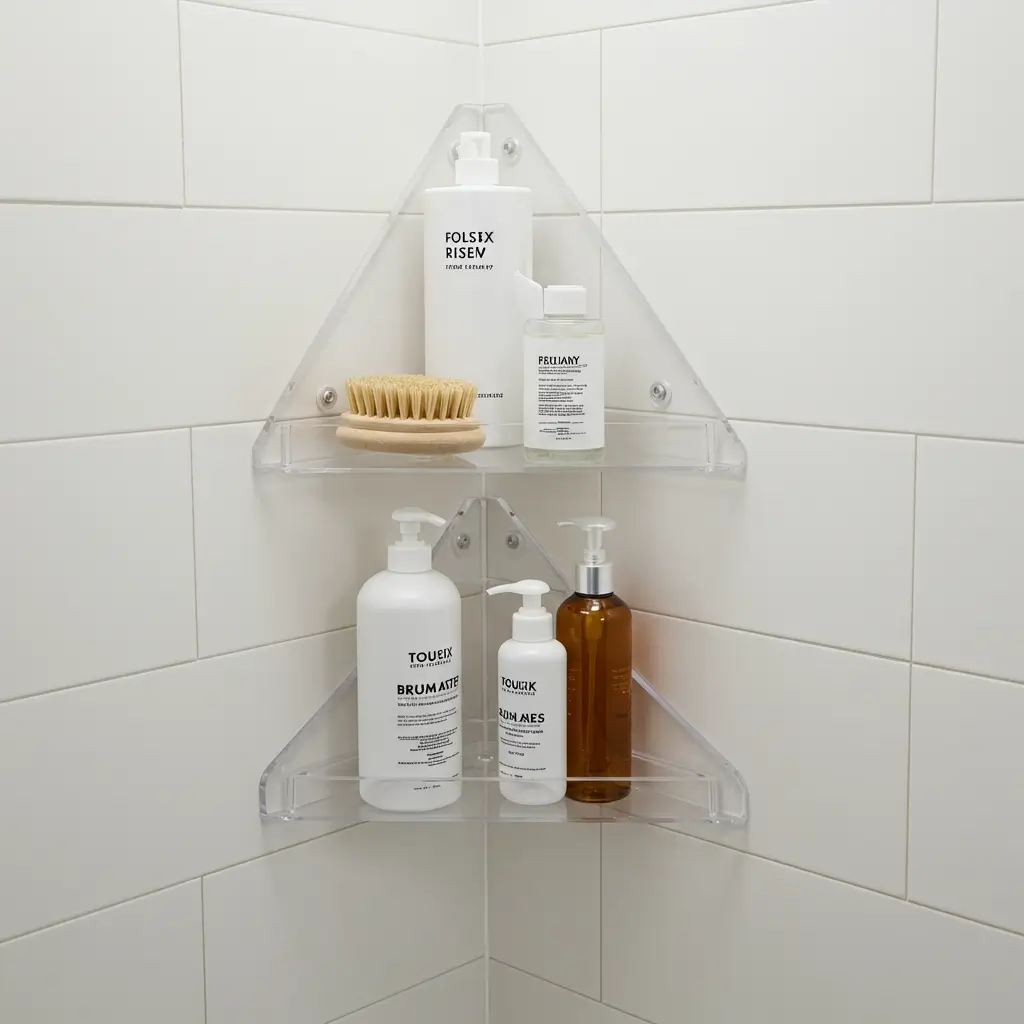 Acrylic triangle shelves bring that modern, minimalist vibe while maximizing corner space. I installed a set of three in my guest bathroom, and they look like floating geometric art that happens to hold soap. The clear acrylic disappears visually, making small showers feel larger.