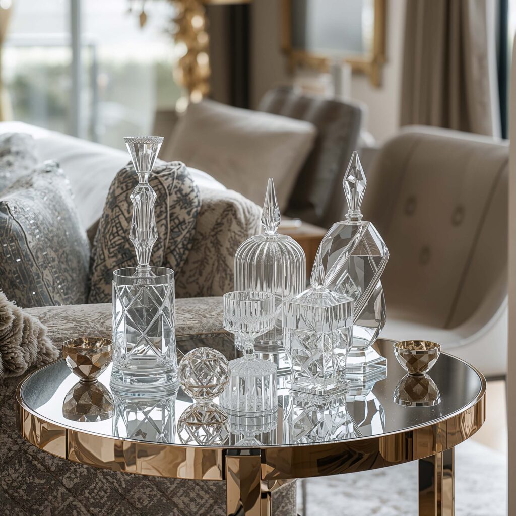 Want to add some serious elegance to your living room? Enter glass and crystal decor. Now, I know what you’re thinking – “Isn’t that a bit grandma-ish?” But hear me out.