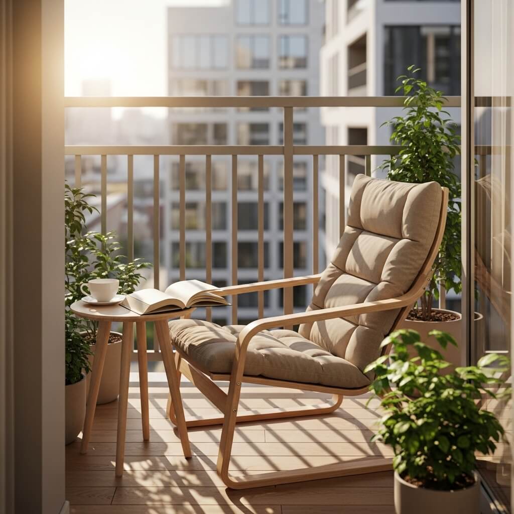Cozy Minimal Balcony Reading Nook Setup