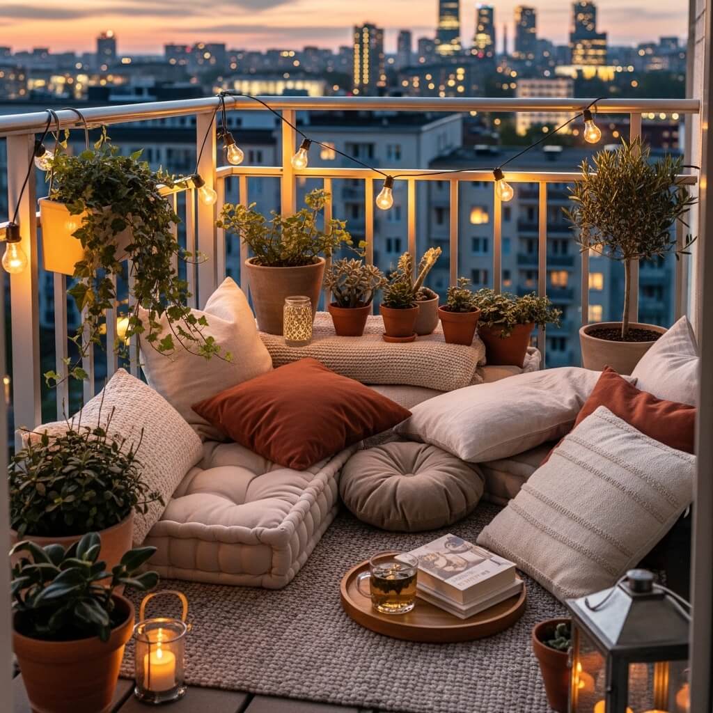 Let’s bring it all together. You want that overall cozy, chill vibe that makes your urban apartment balcony feel like an escape from the chaos below.