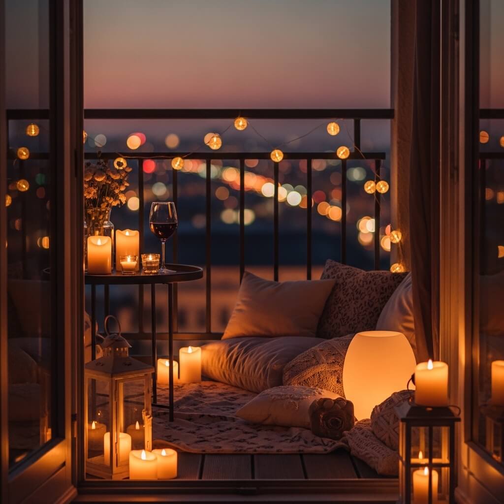 Romantic Evening Balcony Lighting Ideas