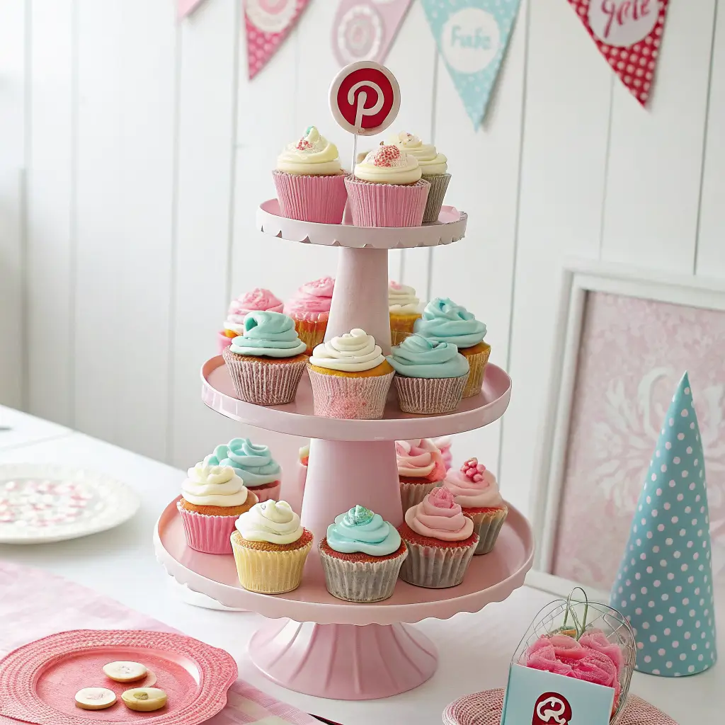 themed cupcake stand display works as decor and dessert, which feels very efficient and frankly a little genius. Cupcakes create height, color, and charm on a party table, especially when you style them with intention.