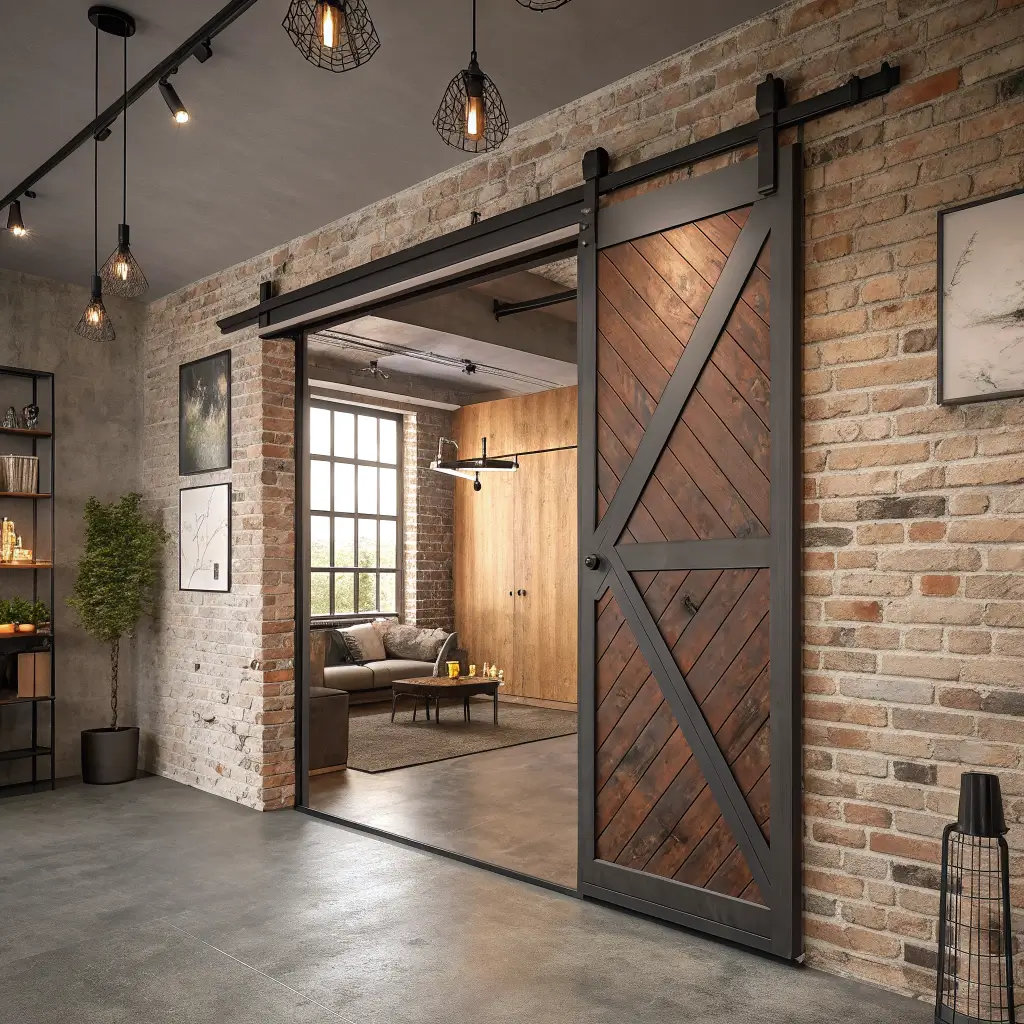 Industrial sliding doors bring urban edge to residential spaces. These raw beauties celebrate exposed mechanisms, honest materials, and the beauty of functional design.