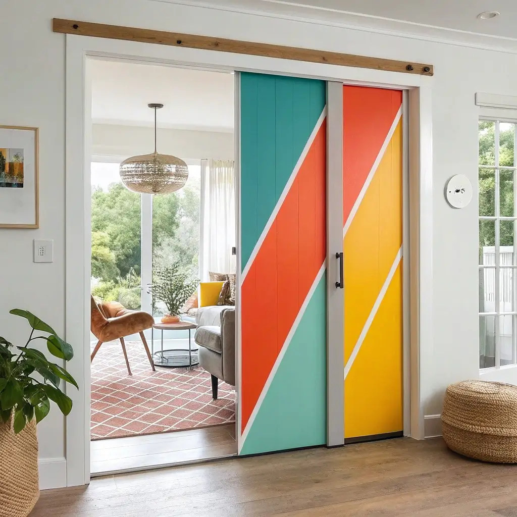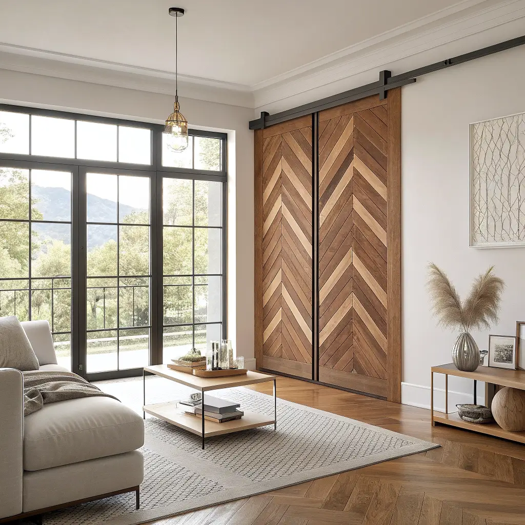 Chevron pattern doors turn functional elements into geometric art. These contemporary designs add visual interest while maintaining the practical benefits of sliding doors.