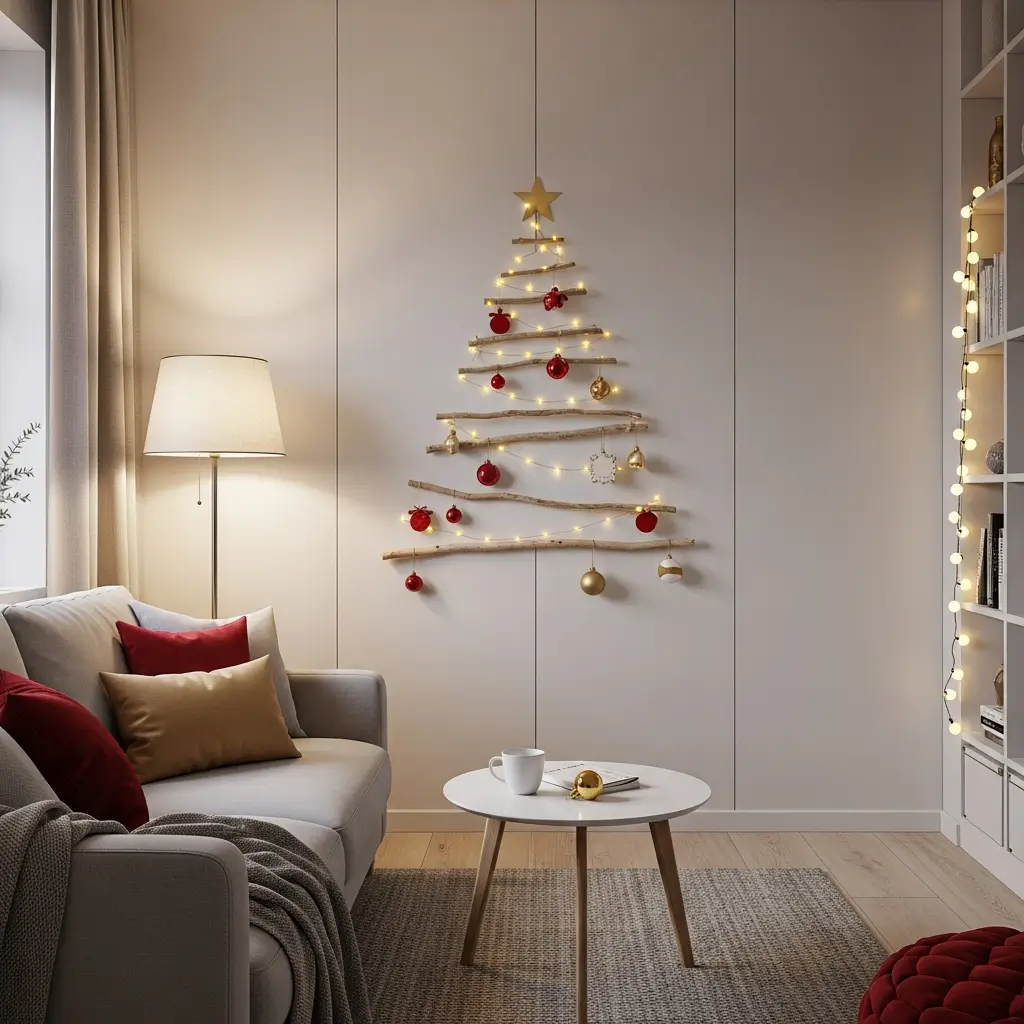 My personal favorite? Hanging branches or driftwood at graduated lengths to form a tree silhouette. Secure each branch to the wall with removable hooks, starting with the longest at the bottom. Add battery-operated lights and minimal ornaments. It looks incredibly stylish and takes up literally zero floor space.