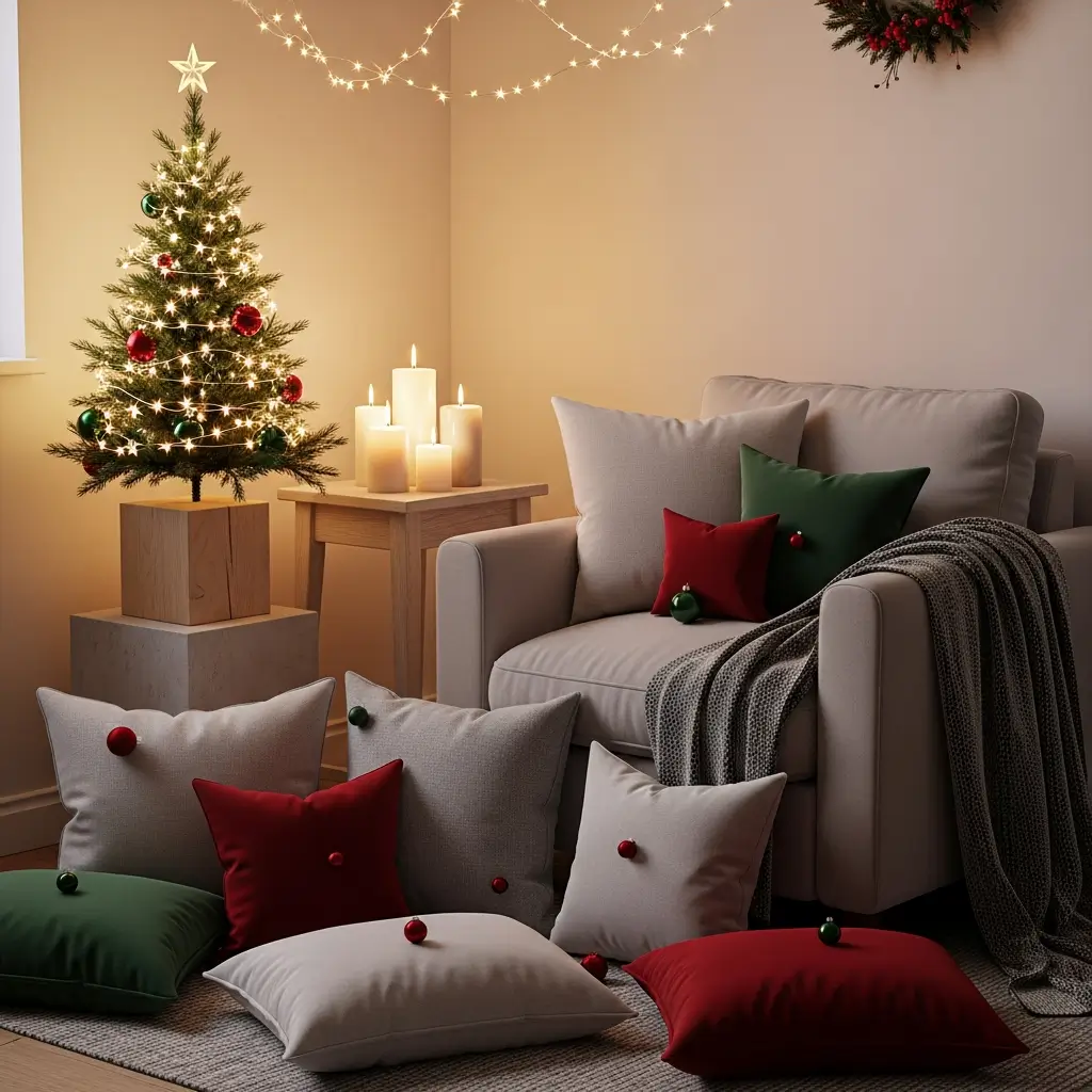 Replace everyday items with holiday versions that actually work. Festive dish towels in your kitchen, holiday throw pillows on your couch, seasonal candles that provide light and scent. These items serve their regular function while doubling as decorations.