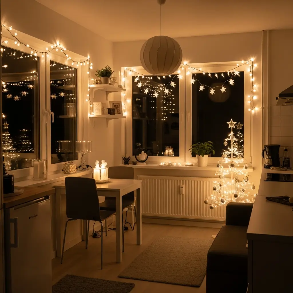 Lighting transforms spaces more than any other single element. Strategic Christmas lighting makes small apartments feel cozy and festive without physical clutter.