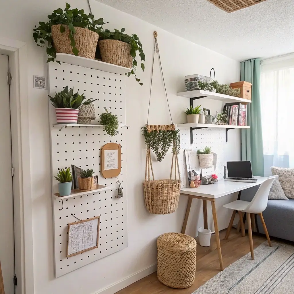 • Pegboard systems: Not just for garages anymore – paint them cute colors and organize everything