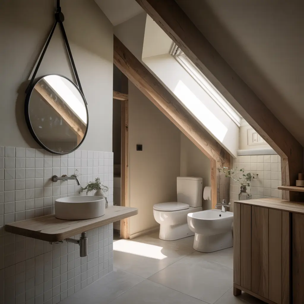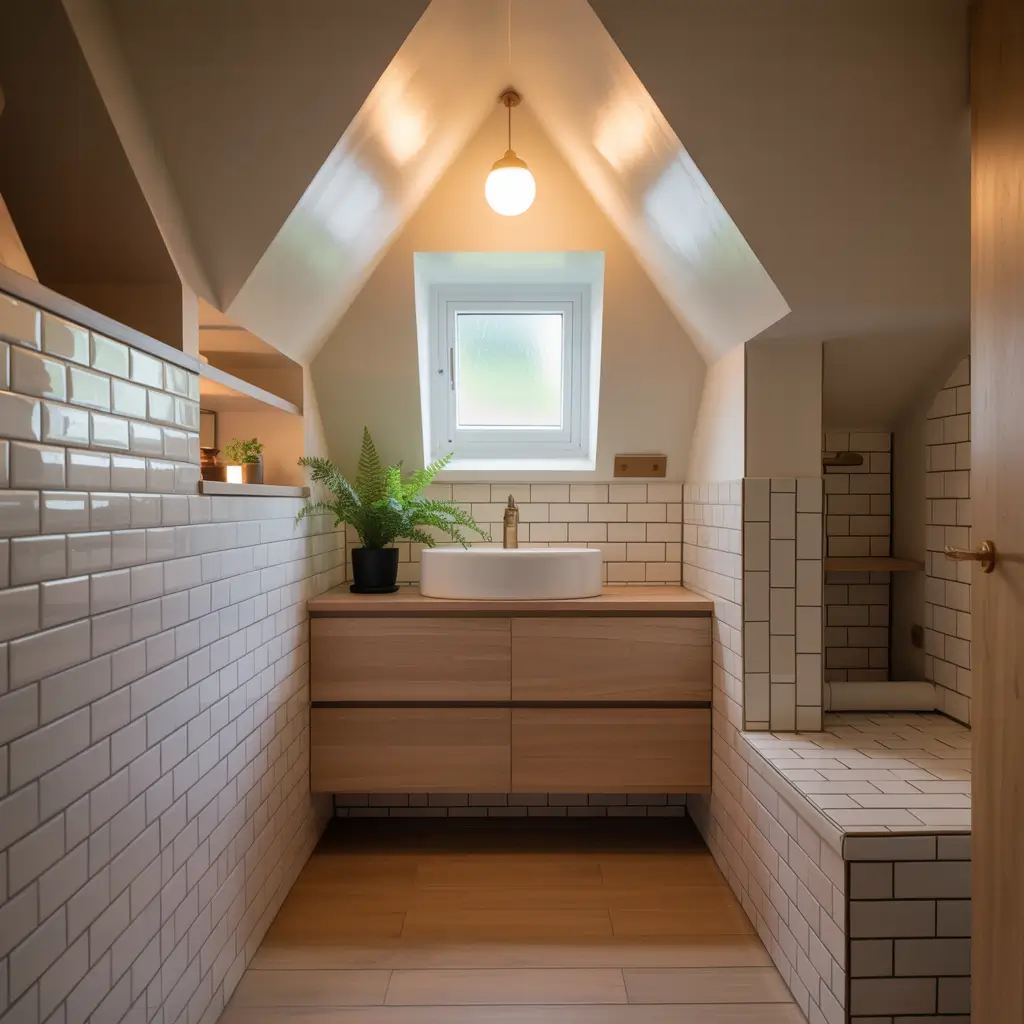 Here’s what nobody tells you about attic bathrooms: those “problematic” features everyone warns you about? They’re actually your secret weapons. Low ceilings create cozy vibes. Weird angles add character.