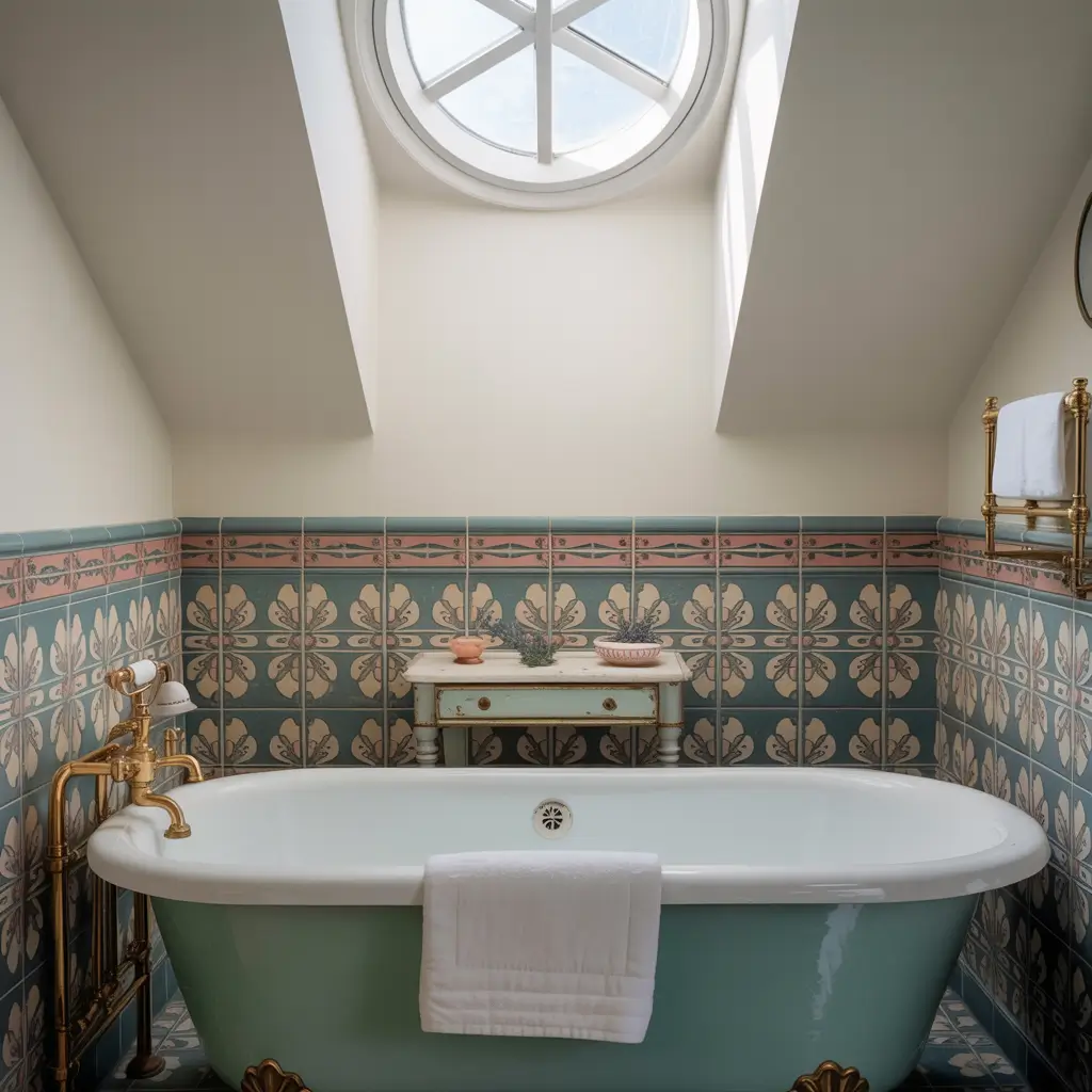 Vintage tiles in attic bathrooms create instant personality. Bold patterns distract from awkward angles while adding serious style points. My best friend’s hexagon tile floor transformed her boring attic bath into an Instagram-worthy space.