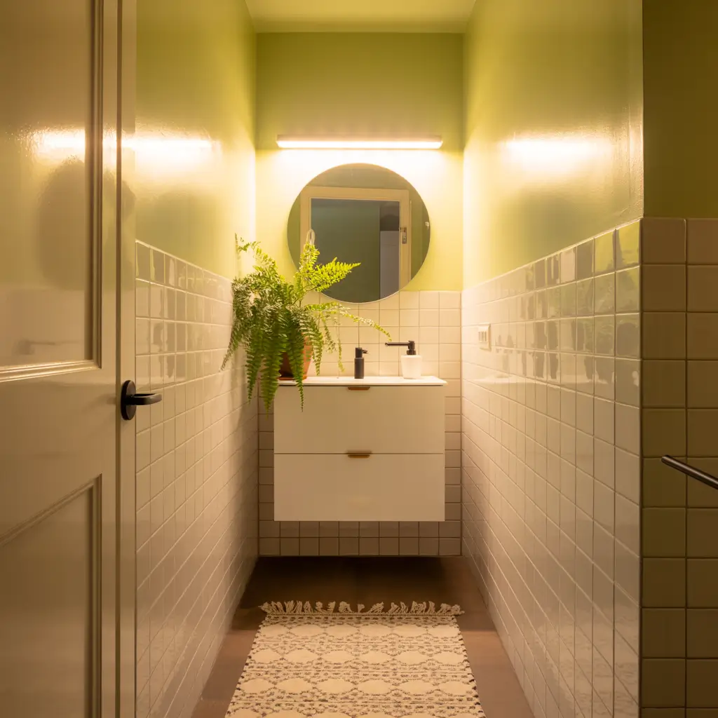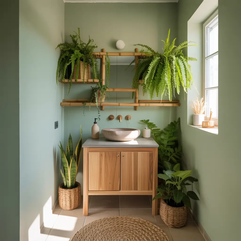 Here’s a pro tip: green walls + actual plants = bathroom goals. The monochromatic green palette makes even the tiniest space feel lush and intentional. Just make sure you pick plants that actually like humidity, or you’ll be dealing with crispy leaves. Trust me on this one :/
