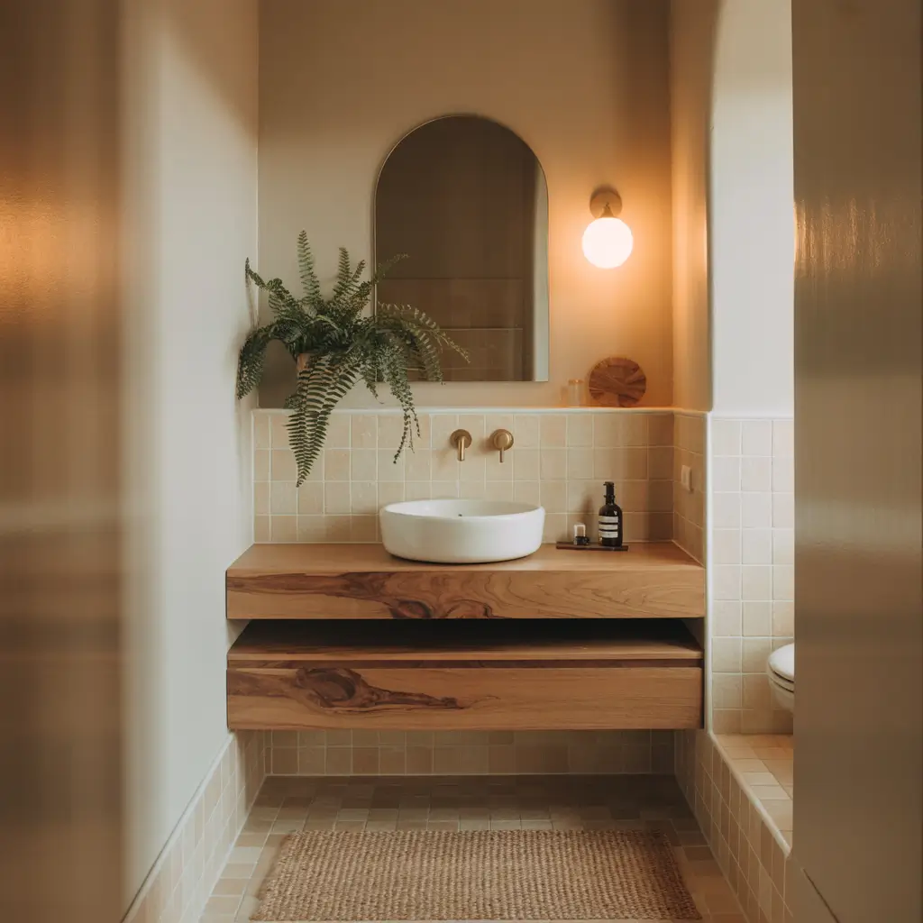 My neighbor did this combo, and their bathroom went from forgettable to magazine-worthy. The contrast between black and wood creates depth that actually makes the space feel bigger. Wild, right?