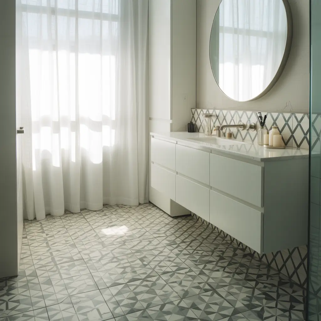 Want to add personality without cluttering? Geometric tiles deliver maximum impact in minimum space. The key is choosing patterns that enhance rather than overwhelm your bathroom.