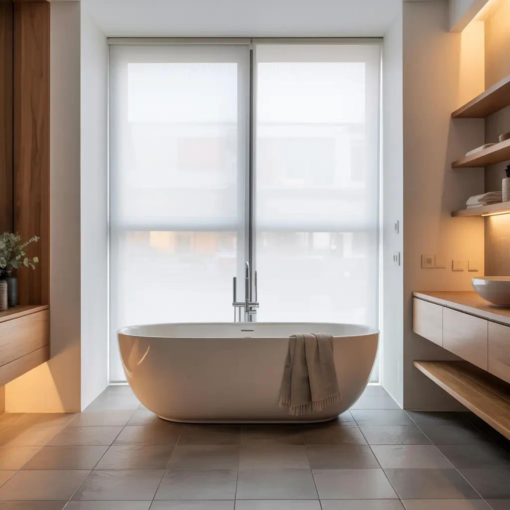 The trick with window placement is privacy without sacrificing light. Frosted lower panes, top-down blinds, or strategically placed plants can provide coverage while maintaining brightness. Consider the view too – even a small window can frame a piece of sky or greenery that enhances relaxation.
