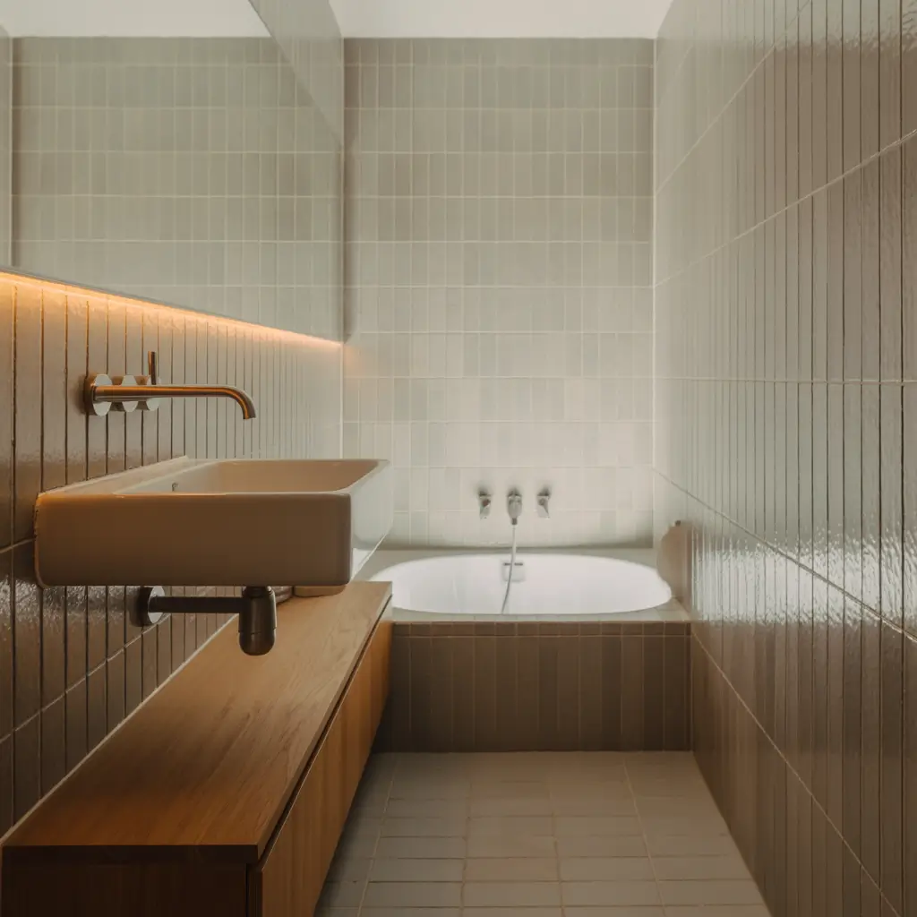 Subway tiles around tubs create timeless appeal that works in any small bathroom. This classic choice provides durability, easy maintenance, and endless design possibilities.