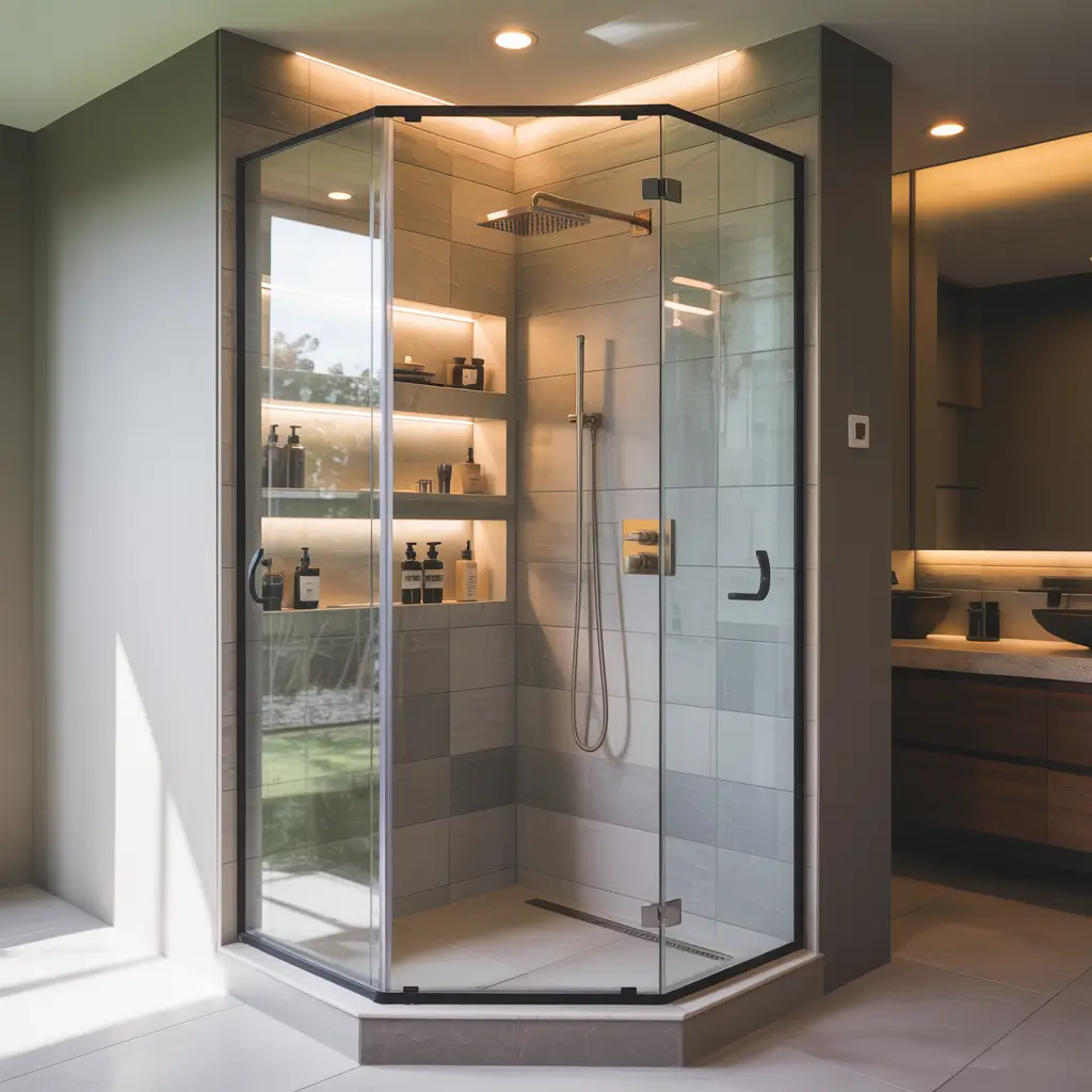 That awkward corner in your bathroom? Stop ignoring it! Corner showers with glass enclosures are perfect for small bathrooms because they utilize dead space while maintaining visual openness.