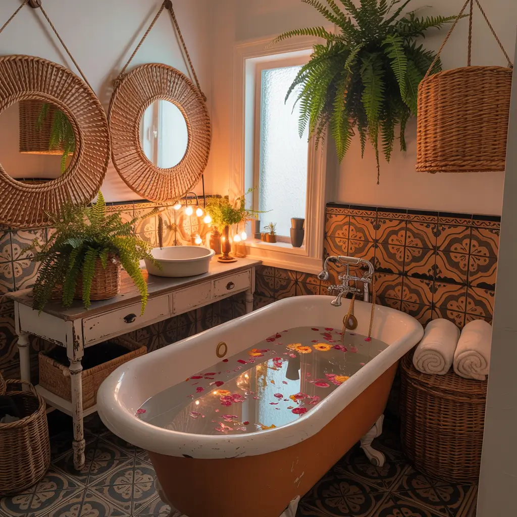 Boho style in a small bathroom? Absolutely! The relaxed, eclectic vibe actually works beautifully in compact spaces because it’s all about layering textures rather than filling floor space.