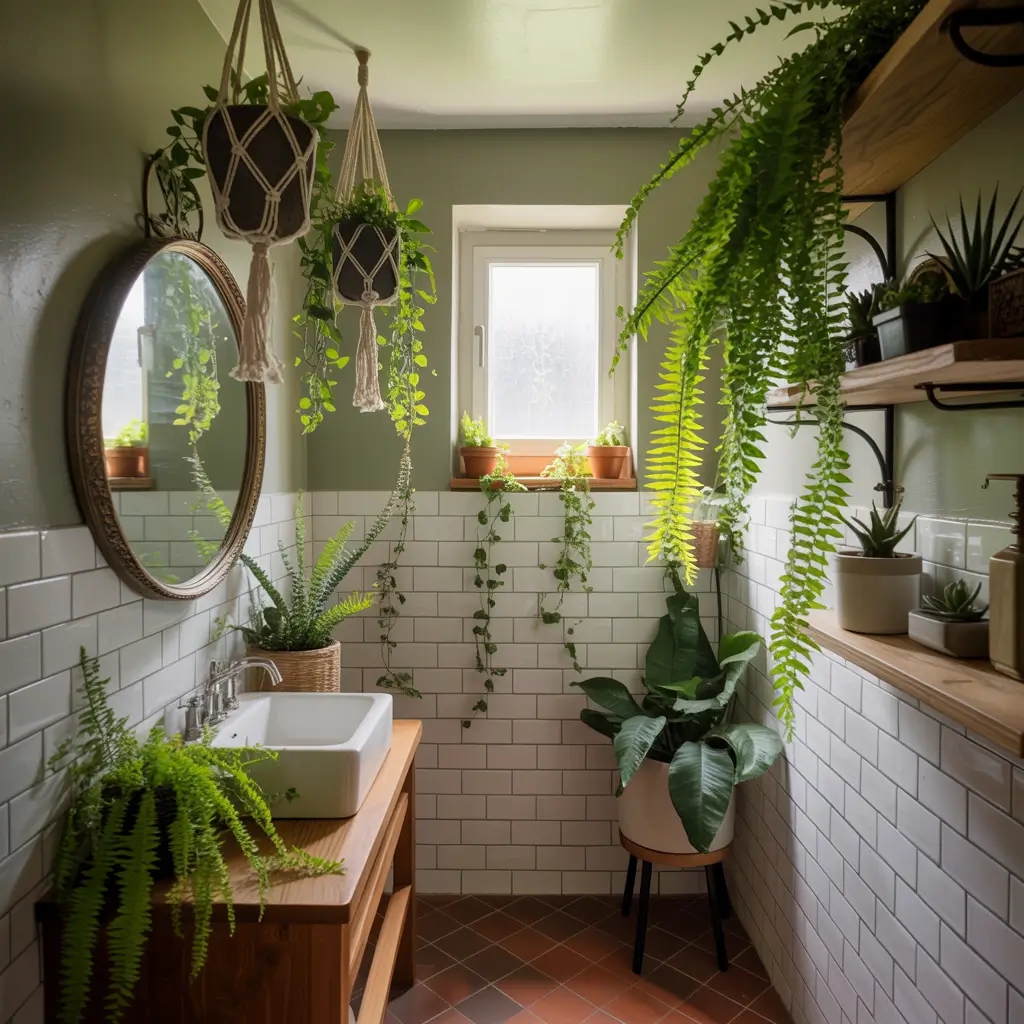 Tiny Bathroom with Plants and Greenery