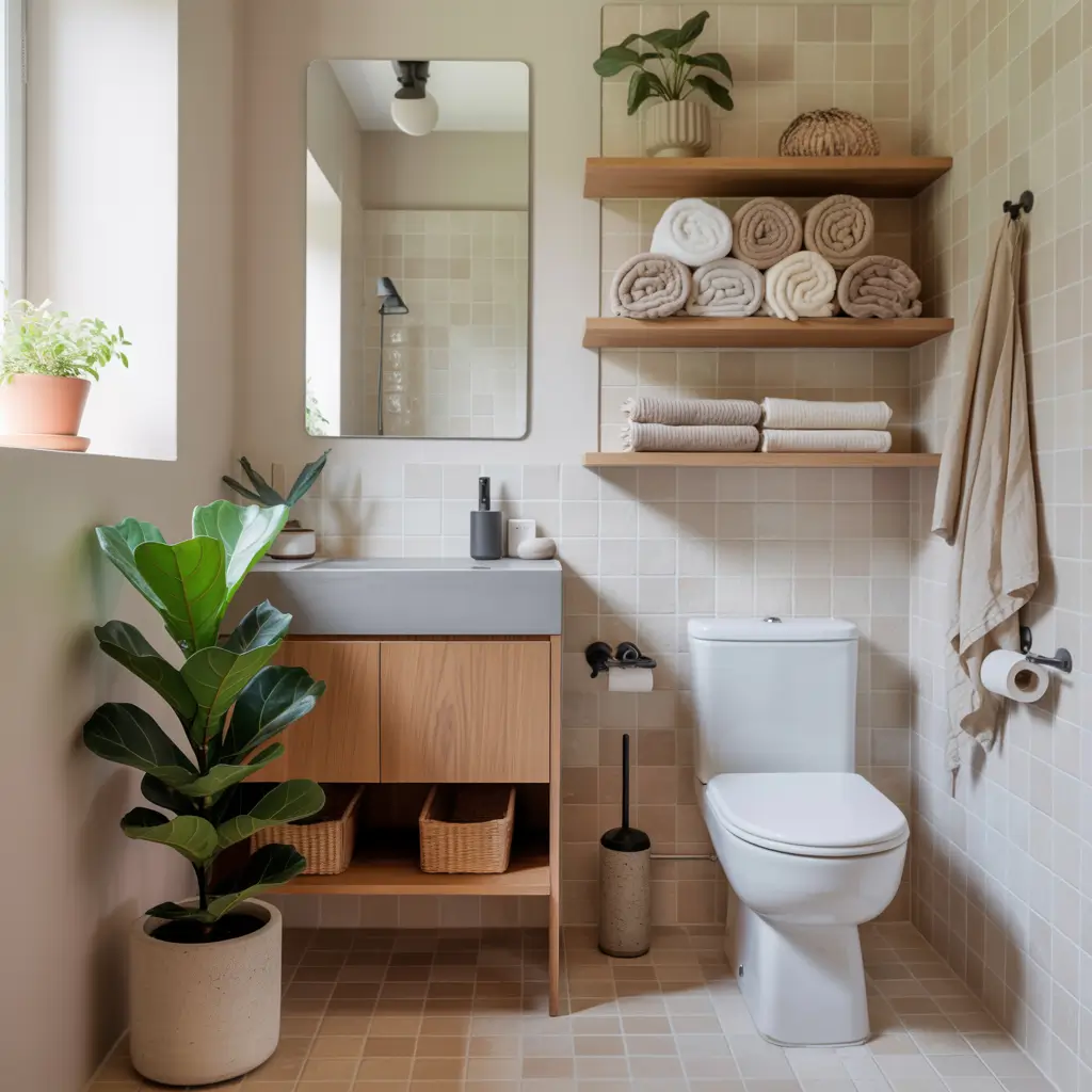 Neutral doesn’t mean boring, people! Combining soft neutrals with wood creates this incredible warmth that makes even the tiniest bathroom feel welcoming. Think spa, not sterile.