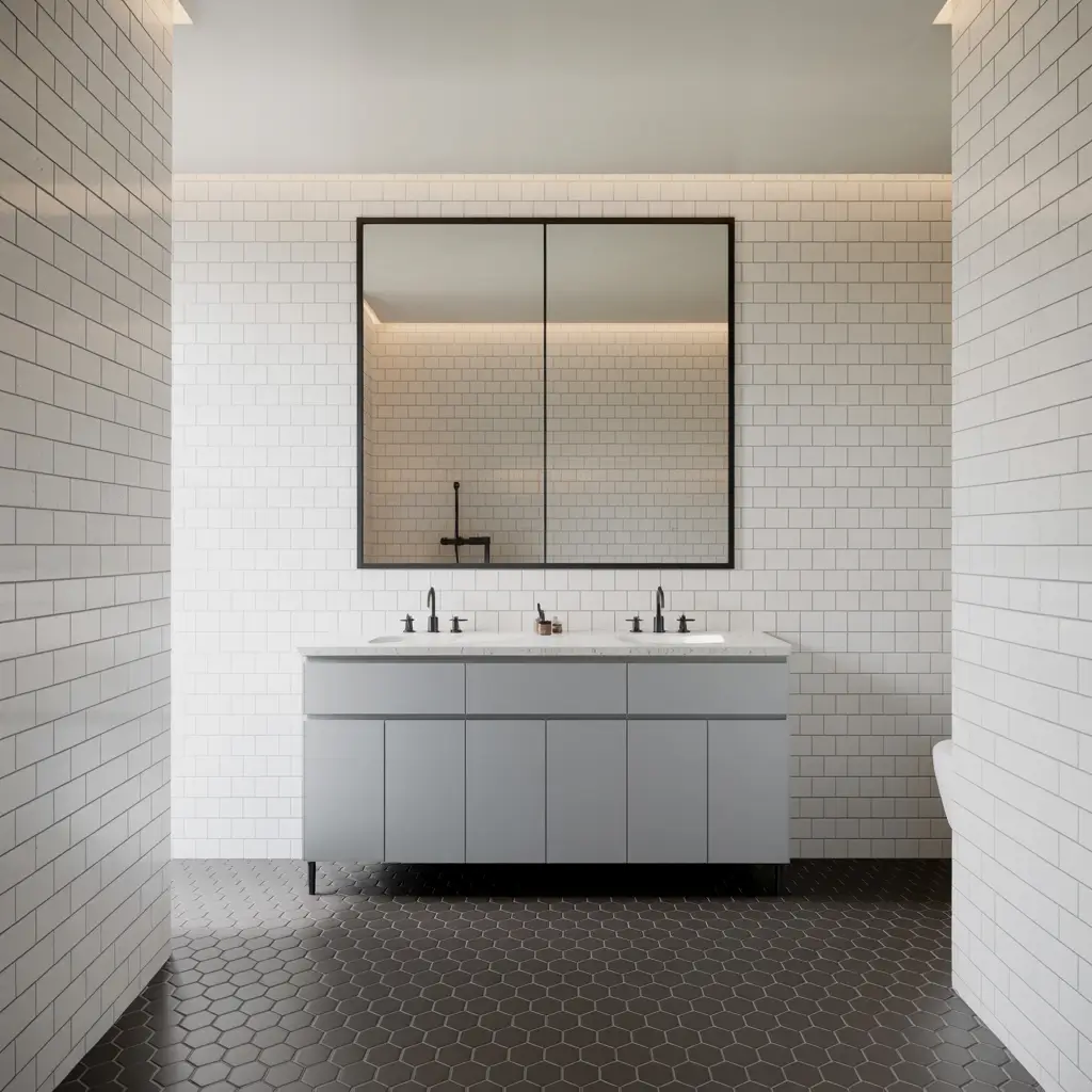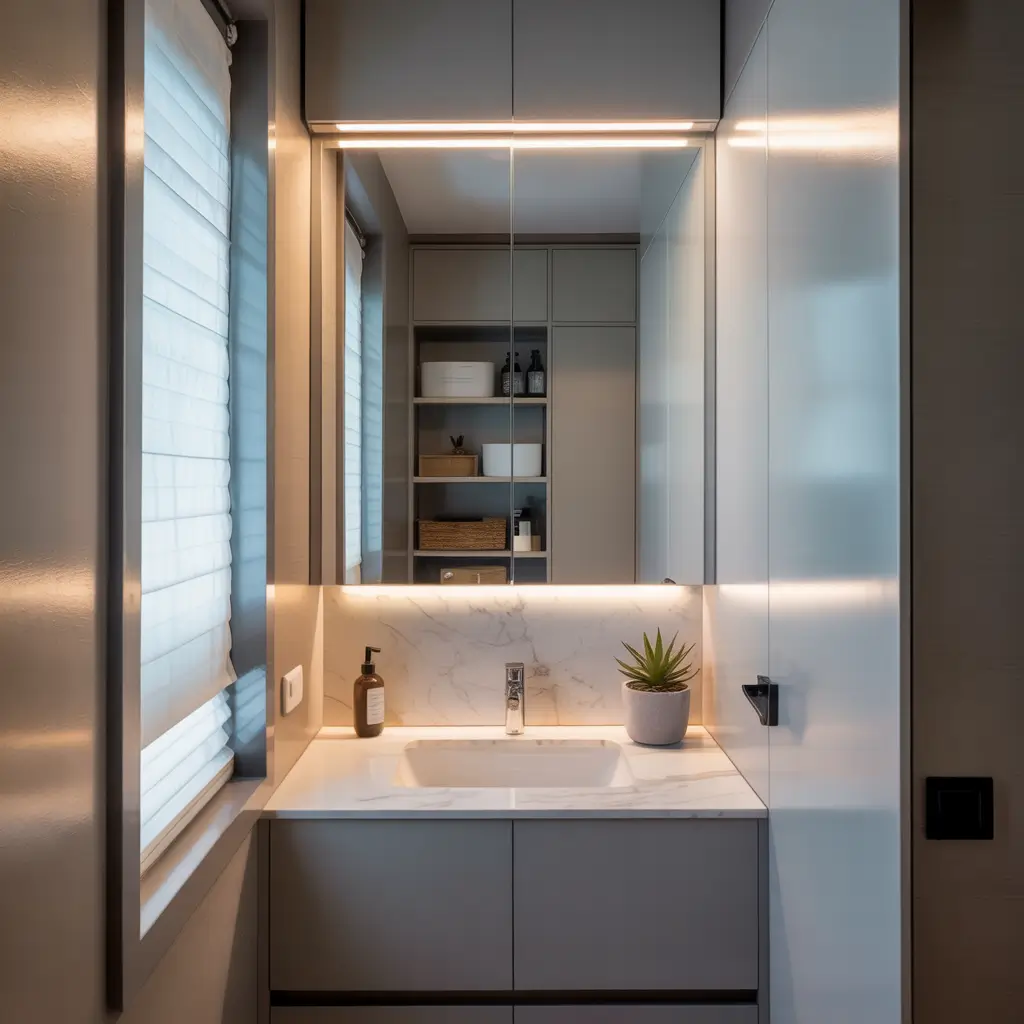 - Mirror cabinets that don’t scream “medicine cabinet”