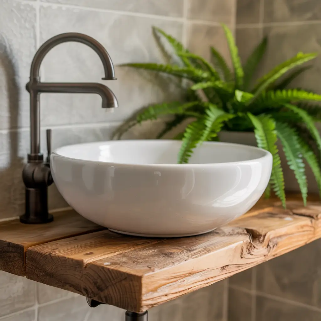Vessel sinks on floating shelves create Instagram-worthy bathrooms in minimal space. This combo turned my bland bathroom into a design statement. The vessel sits atop a live-edge wood shelf, creating organic beauty in just 18 inches of wall space.