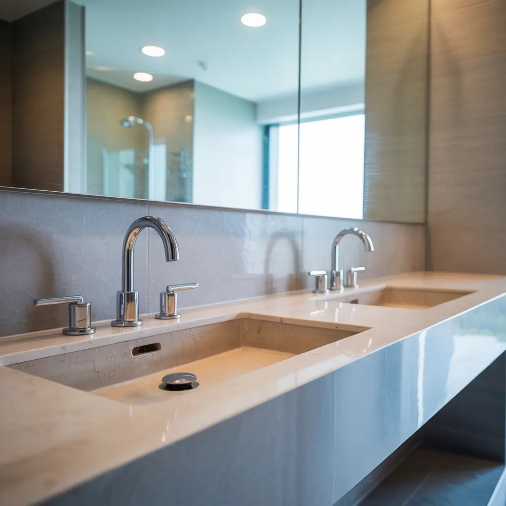 Double faucets on trough sinks create instant his-and-hers stations without needing double vanities. My husband and I can brush teeth simultaneously without elbow fights. Morning harmony achieved!