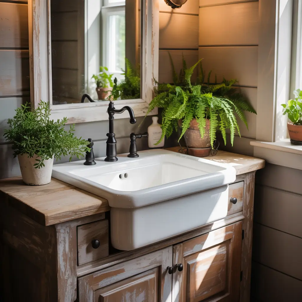 Farmhouse sinks shrank down for small spaces, and I’m here for it. These mini apron-front sinks deliver style without overwhelming tiny bathrooms. My cottage bathroom’s 16-inch farmhouse sink proves you don’t need massive fixtures for farmhouse charm.