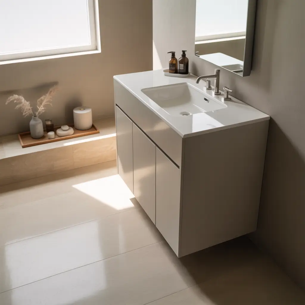 Finding the right sink for a small bathroom changed everything – suddenly I had counter space, storage, AND room to actually move around.