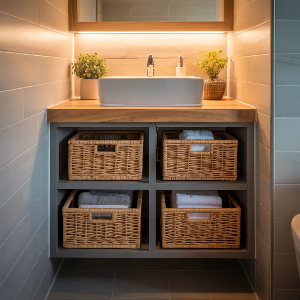 Vanity with Built-In Storage Baskets