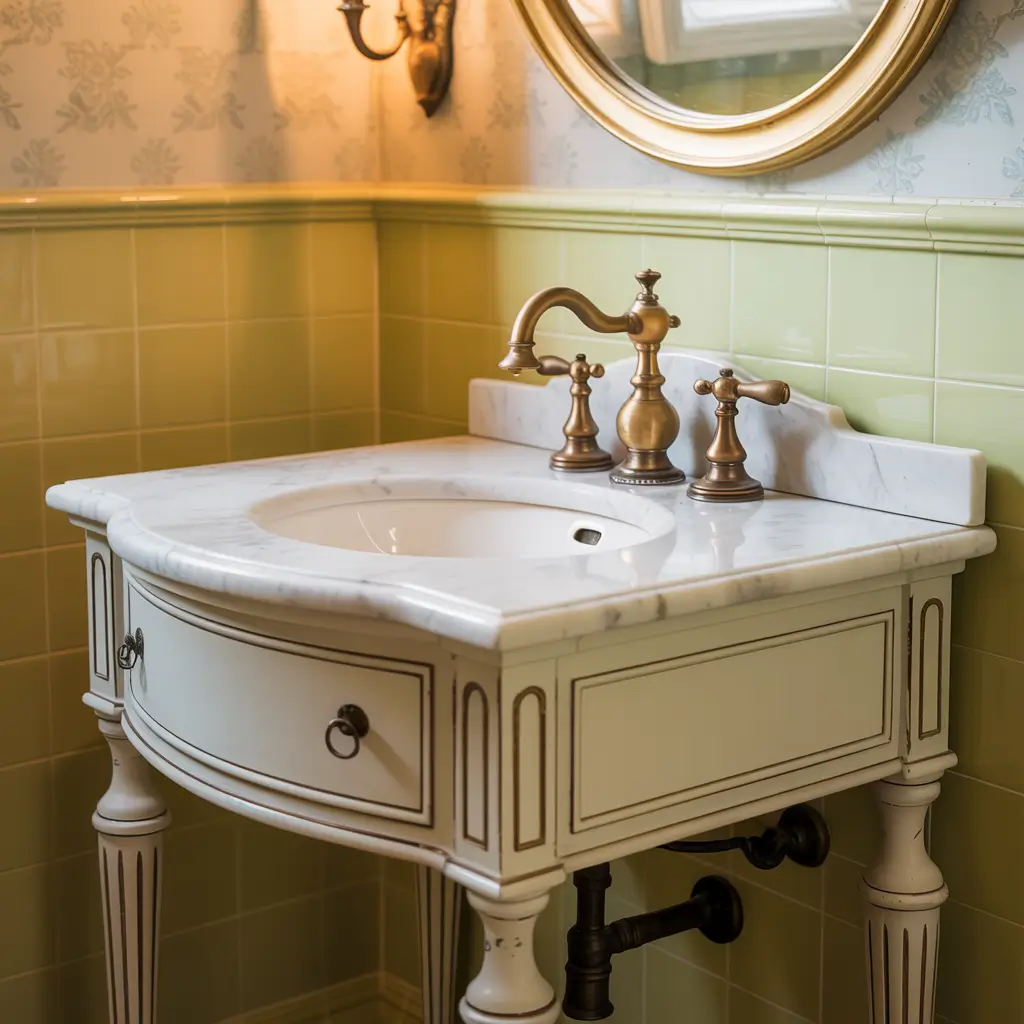 These work especially well in galley-style bathrooms or powder rooms where every inch counts. Just make sure your sink is proportional – nobody wants a tiny sink that splashes water everywhere 🙂