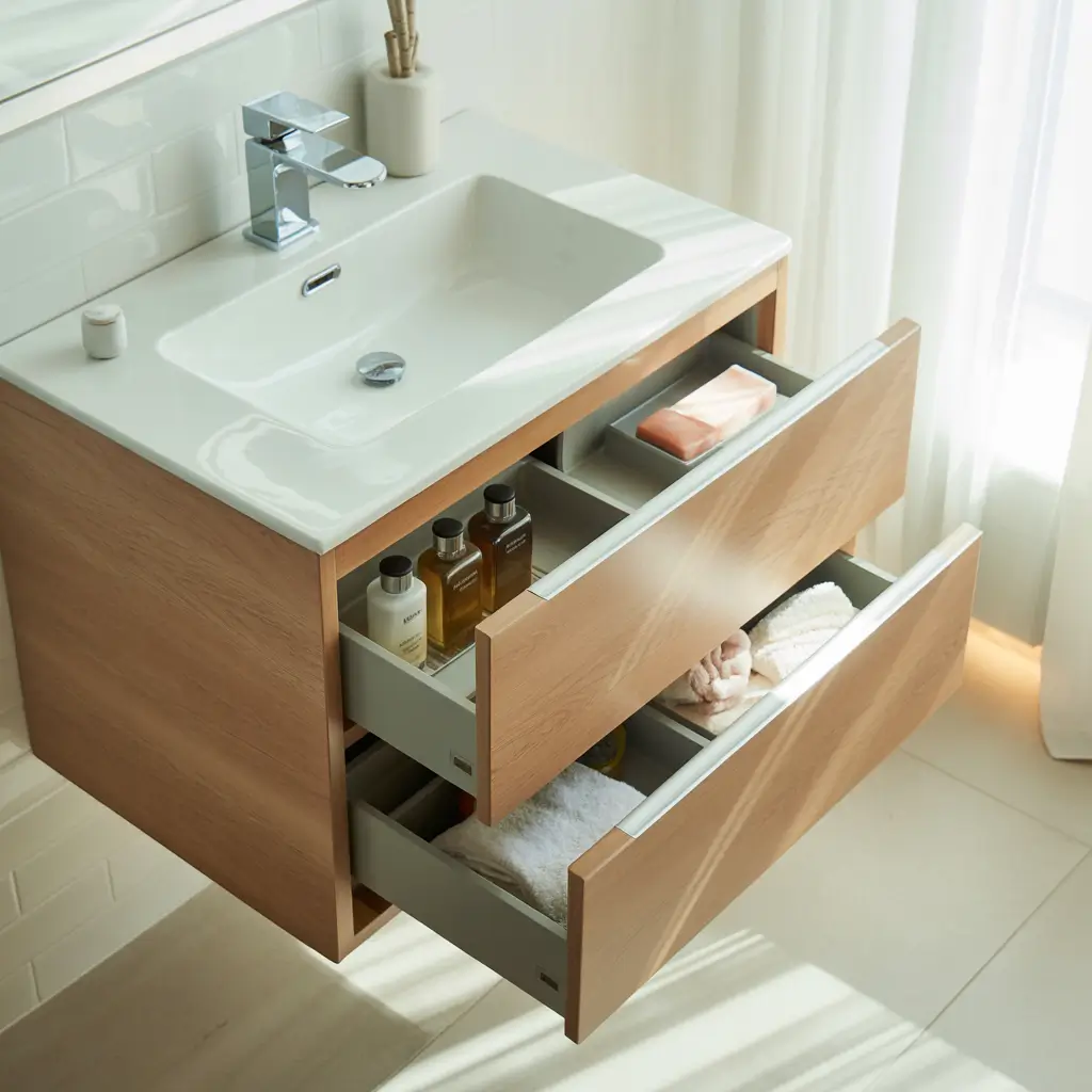 Let’s talk about that wasted space under your sink. Most vanities just throw in a basic cabinet and call it a day. But smart under-sink storage solutions can literally double your bathroom’s storage capacity.