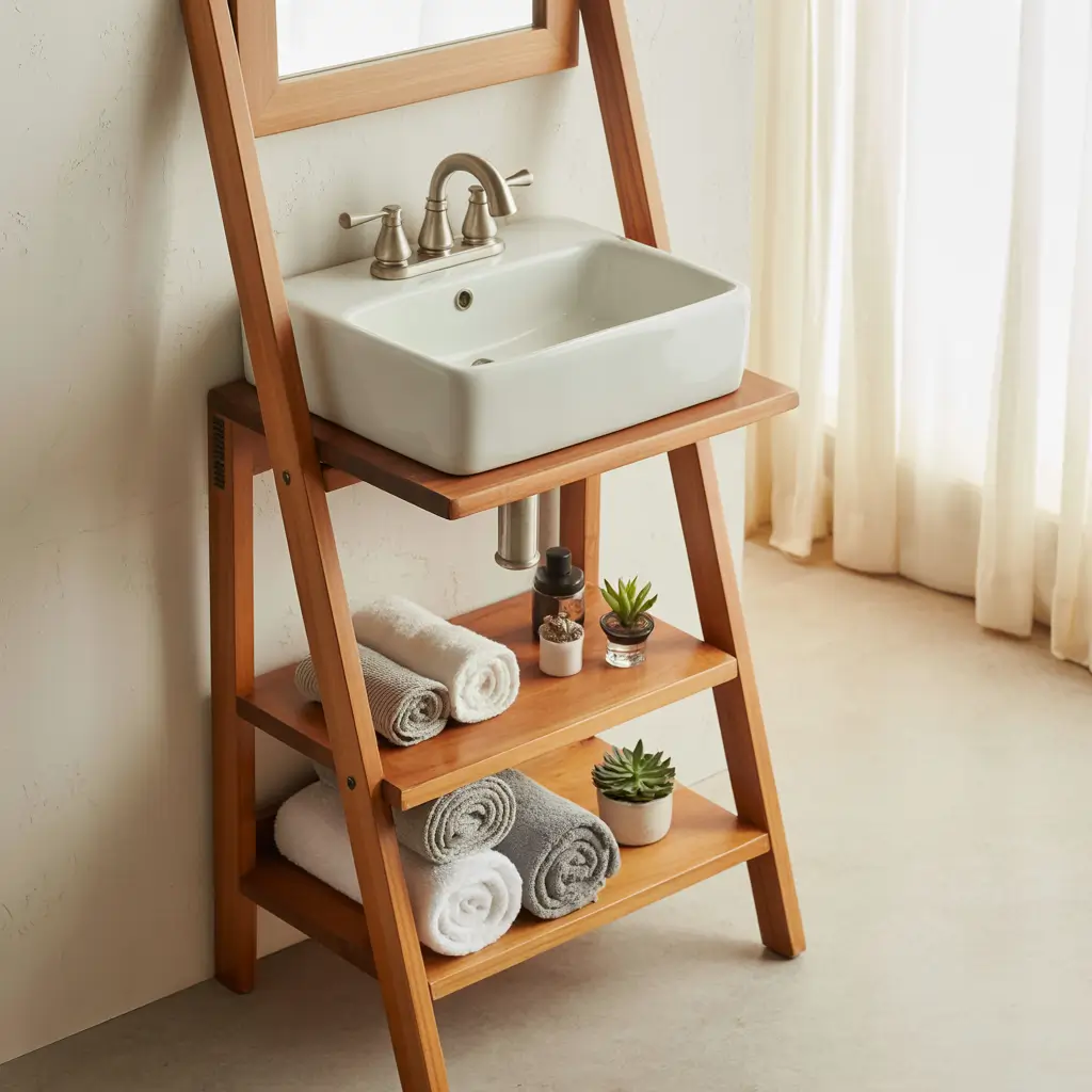 Space-Saving Ladder Shelf Vanity