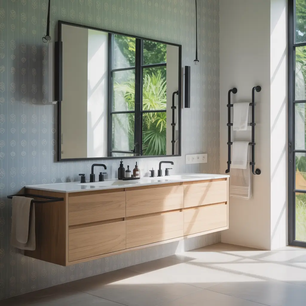 Remember, you’re not just choosing wallpaper; you’re setting the mood for every morning routine and evening wind-down. Whether you go for soothing stripes or bold geometrics, make sure it’s something that makes you smile every time you walk in.