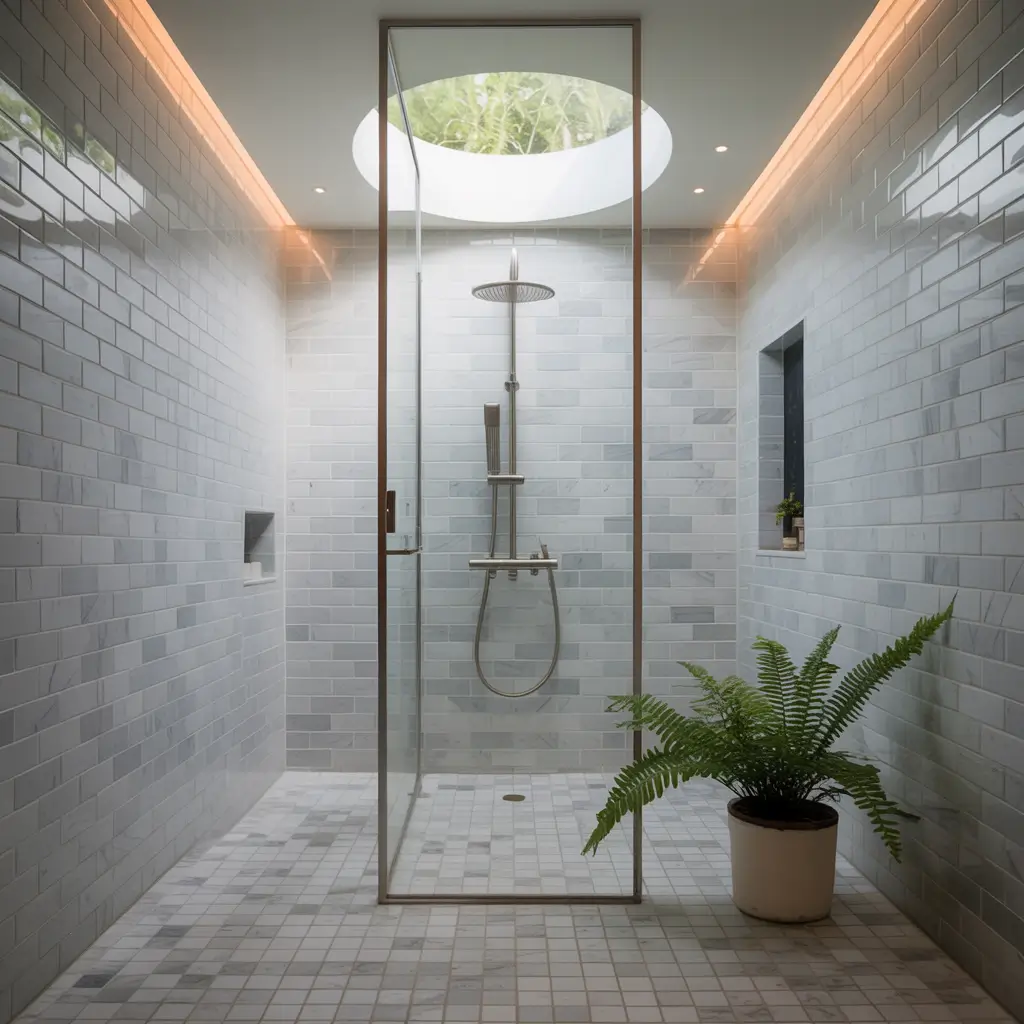 The beauty of skylights in small shower spaces is their dual function. They provide natural light that makes everything look better (including you), while creating vertical visual space that draws the eye up. Even a small skylight makes a massive difference in how spacious your shower feels.