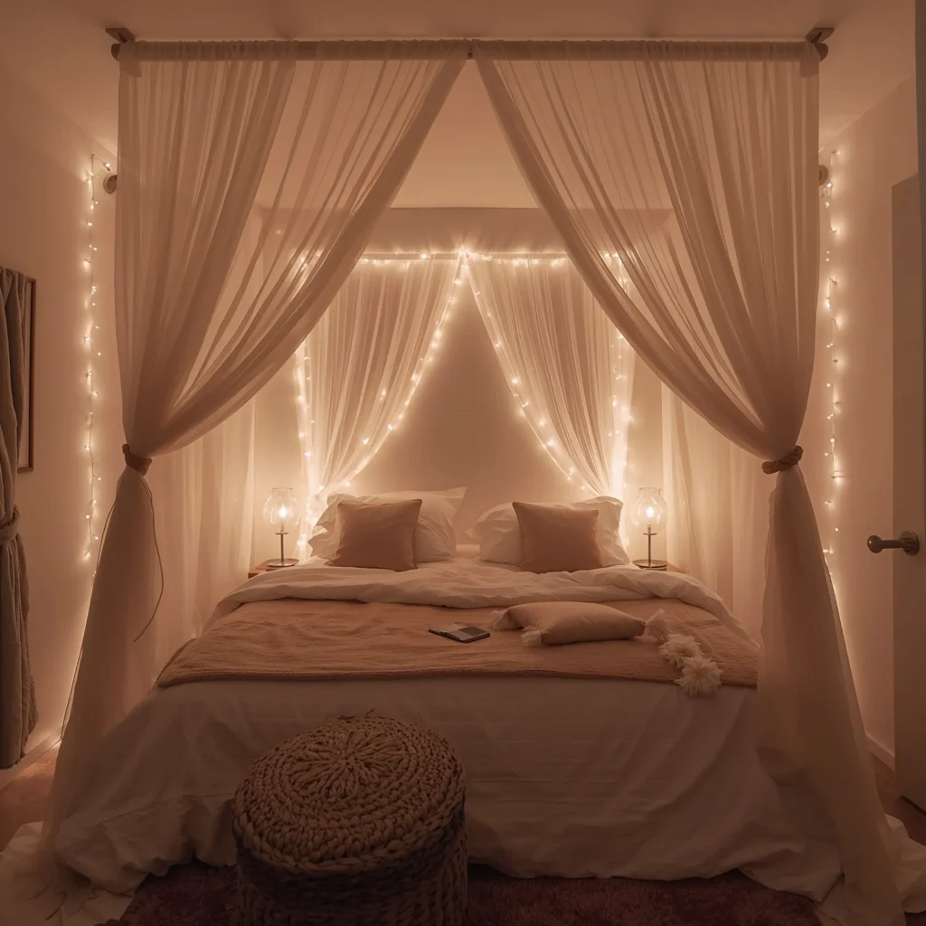 Think canopy beds are only for massive master suites? Think again. You can create a canopy effect in even the tiniest bedroom using ceiling-mounted curtain rods or even just fabric and hooks.