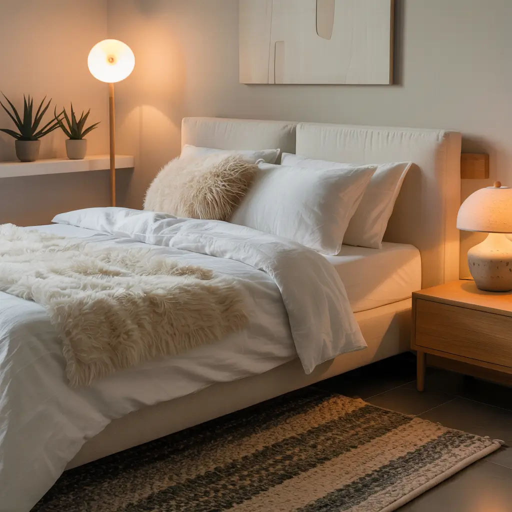 Focus on lighting ambiance. I installed dimmer switches ($20 each) and use warm-toned bulbs exclusively. The ability to control lighting levels makes the room feel like a high-end hotel. Harsh overhead lighting kills luxury vibes instantly.