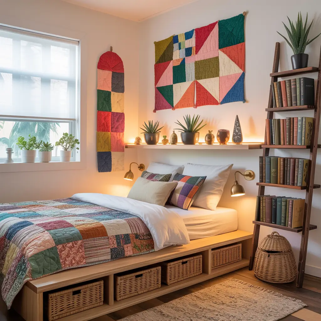 Under-bed storage is mandatory, but make it pretty. I use vintage suitcases that slide under but look decorative when visible. They hold seasonal clothes while adding character. Ugly plastic bins make your room feel like a dorm.