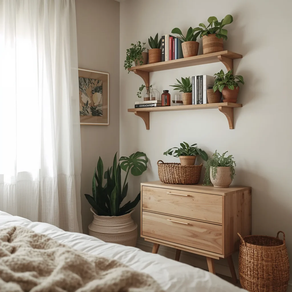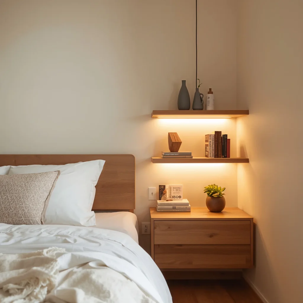 I switched to floating shelves about six months ago, and the difference is incredible. The visual weight of traditional nightstands disappears, making my tiny bedroom feel bigger instantly. You can install them at any height that works for you – no more awkward reaching or knocking things over in the dark.