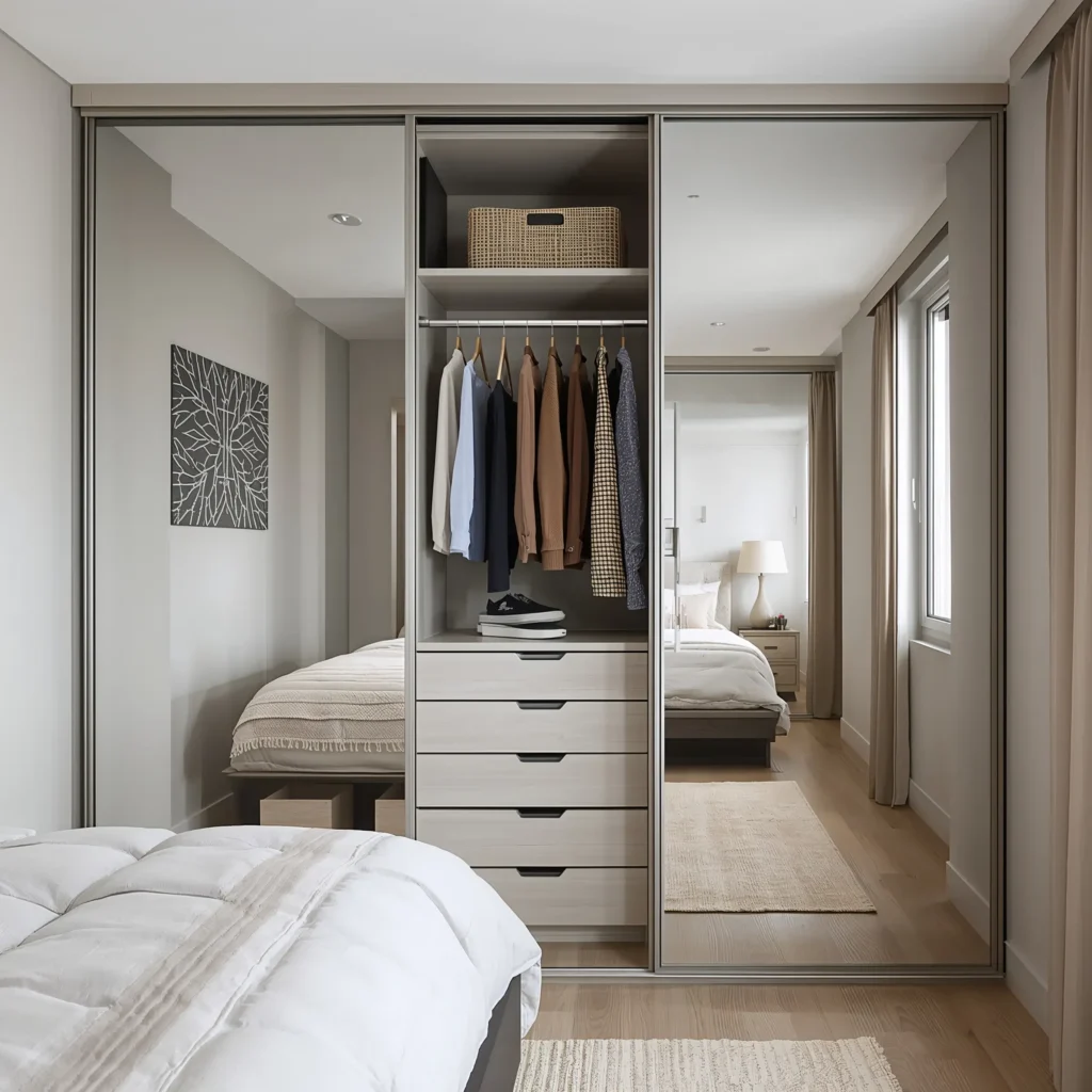 You can even use mirrored panels to make your room look twice as big. Two storage solutions for the price of one? Yes, please.