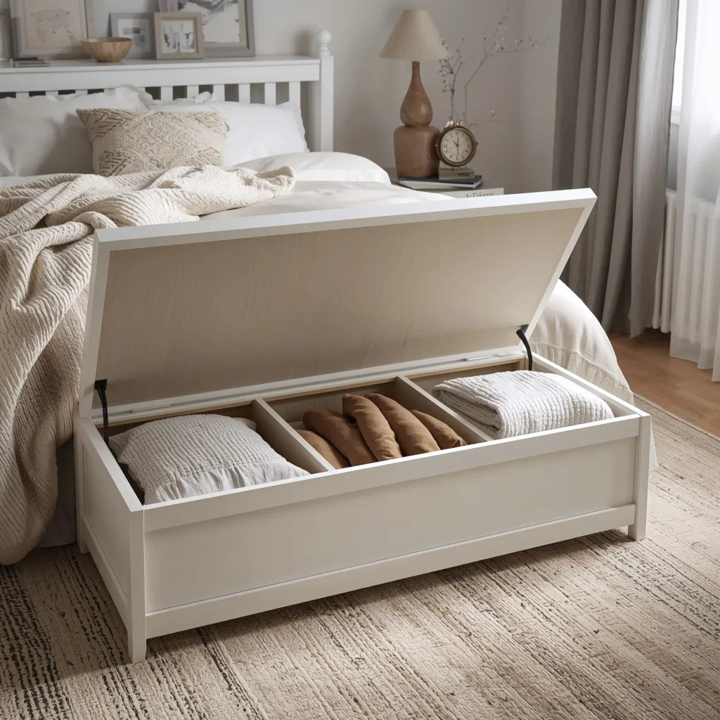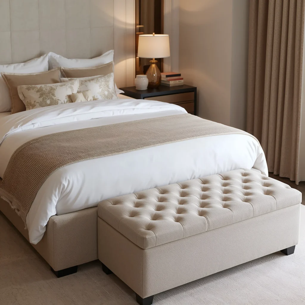 Here’s where we get smart about furniture. A storage bench at the foot of your bed serves triple duty: seating, storage, and style. Can your regular bench do that? Didn’t think so.