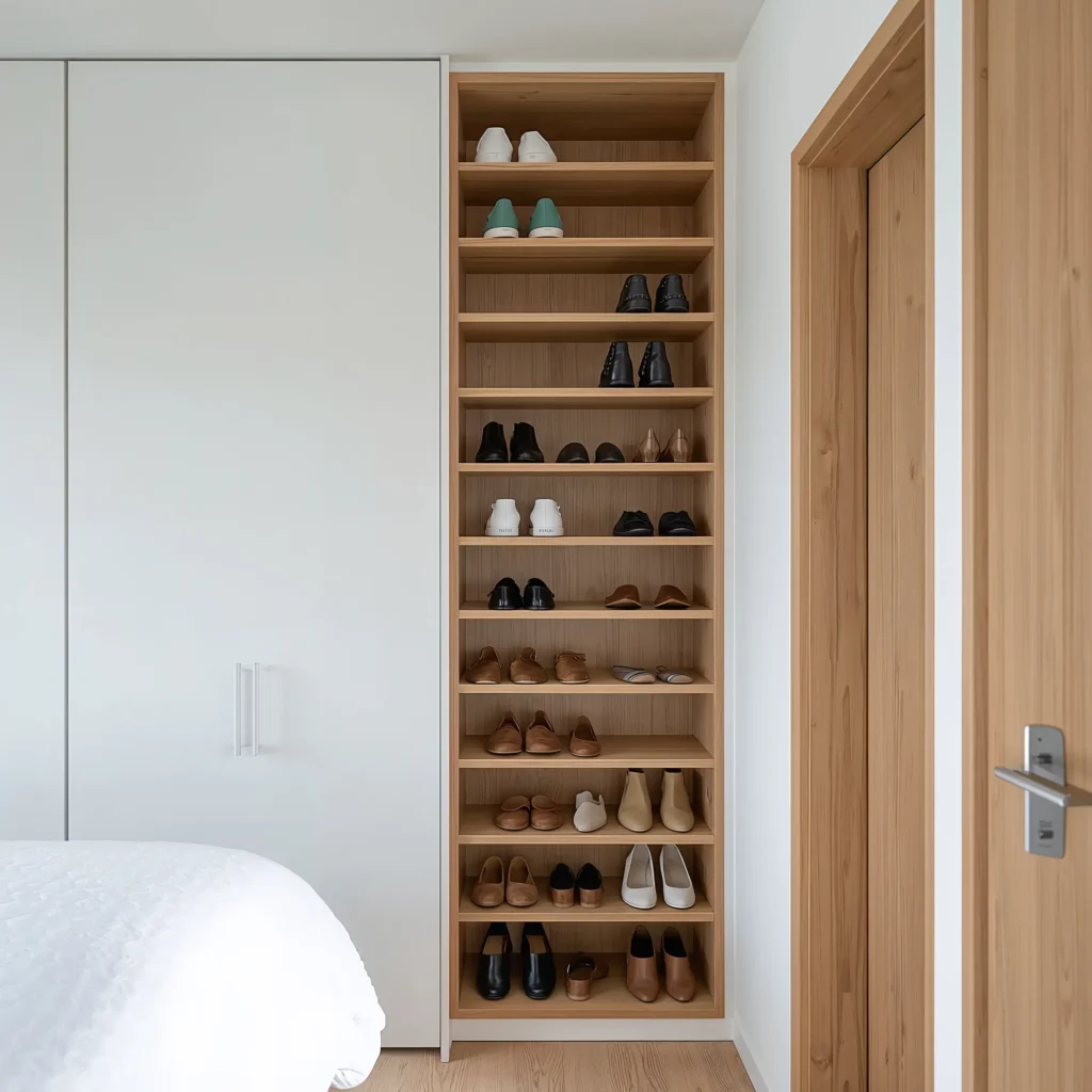 Still storing shoes in their boxes like it’s 1995? A vertical shoe storage tower displays your collection while keeping everything organized and accessible.