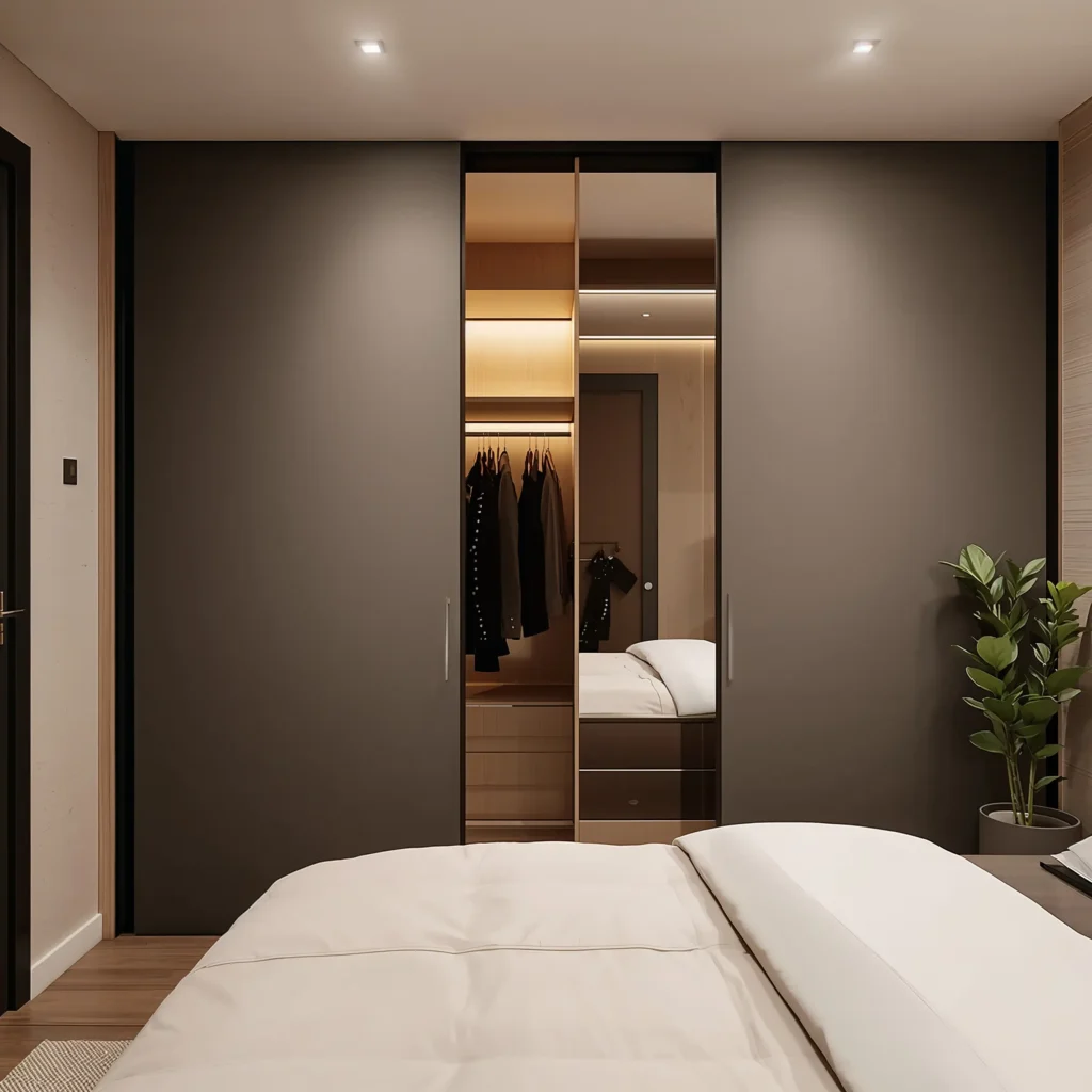 Traditional closet doors waste space and block access to half your closet at any given time. A sliding wardrobe system solves both problems while looking ridiculously sleek.
