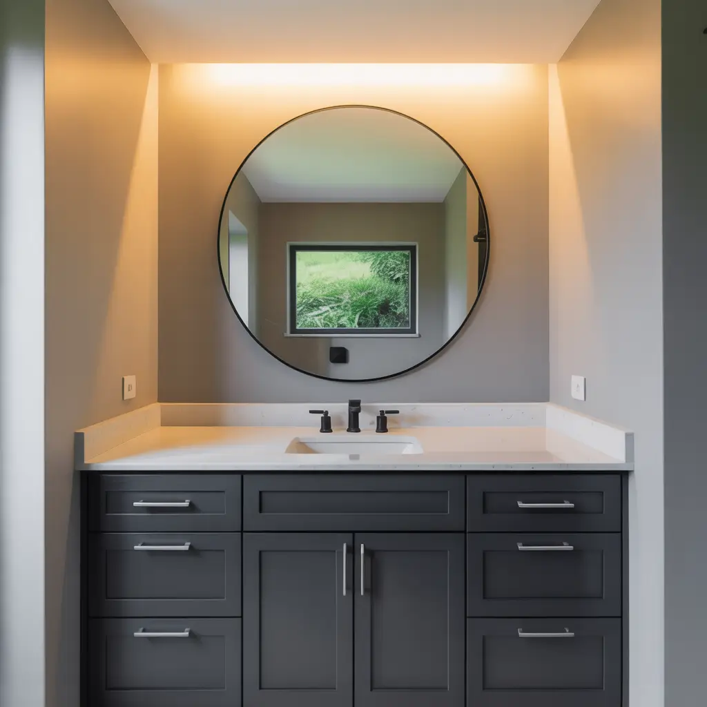 I installed a 36-inch round mirror in my black bathroom, and it completely transformed the space. The reflection doubles your light and creates this portal-like effect that’s honestly mesmerizing.