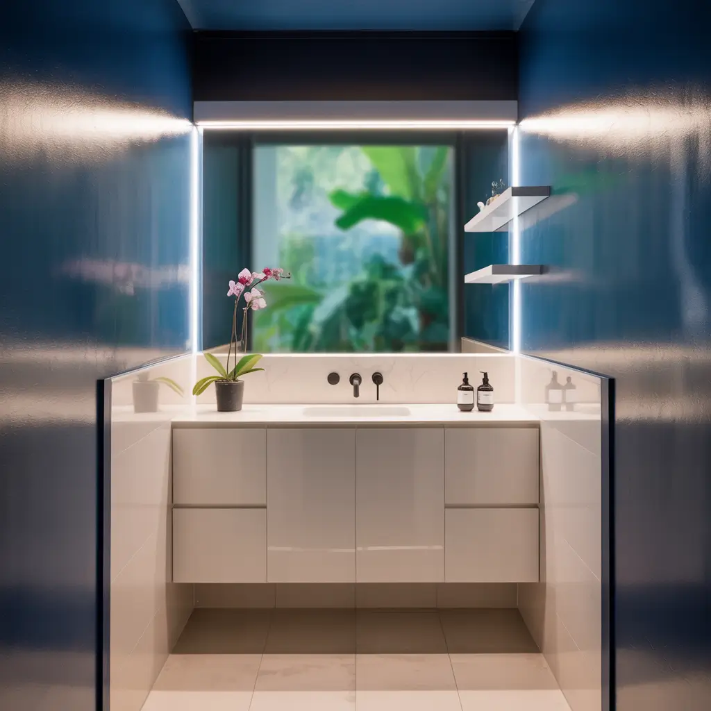 Here’s the thing about small bathrooms – everyone tells you to go white and bright, right? But blue? Blue brings personality, depth, and this weird psychological trick where it actually makes small spaces feel bigger. Trust me on this one.