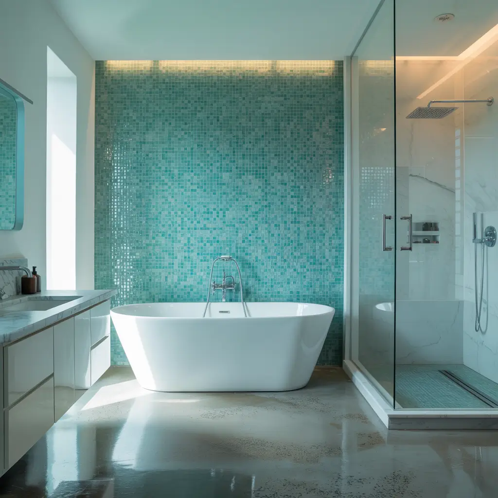 Want to make a statement without committing to teal everything? Mosaic accent walls are your answer. They add texture, color, and personality while keeping the rest of the space neutral.
