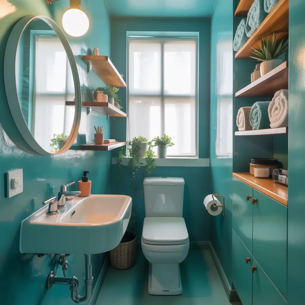 Turquoise brings energy, and lord knows we need that at 6 AM. But here’s the real star: smart storage that doesn’t eat up precious floor space. We’re talking corner shelves, over-toilet cabinets, and magnetic strips for bobby pins (game-changer, FYI).