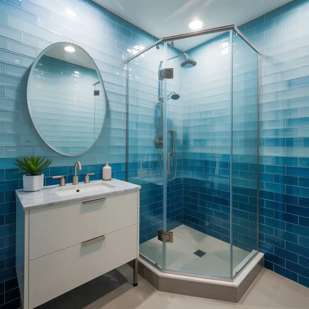 Ombre isn’t just for hair anymore. Blue ombre tiles create this gorgeous gradient effect that draws the eye upward, making your ceiling look higher. It’s basically an optical illusion that happens to look amazing.