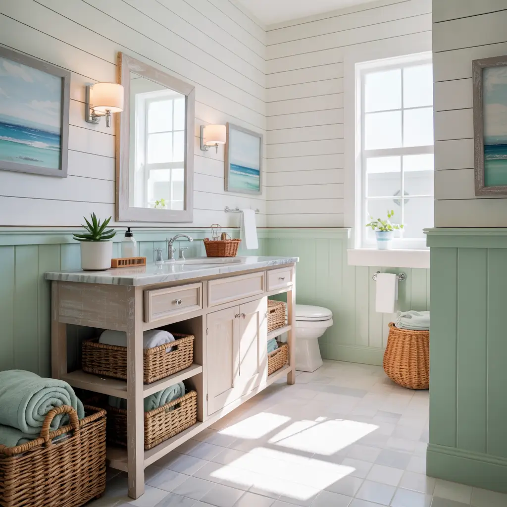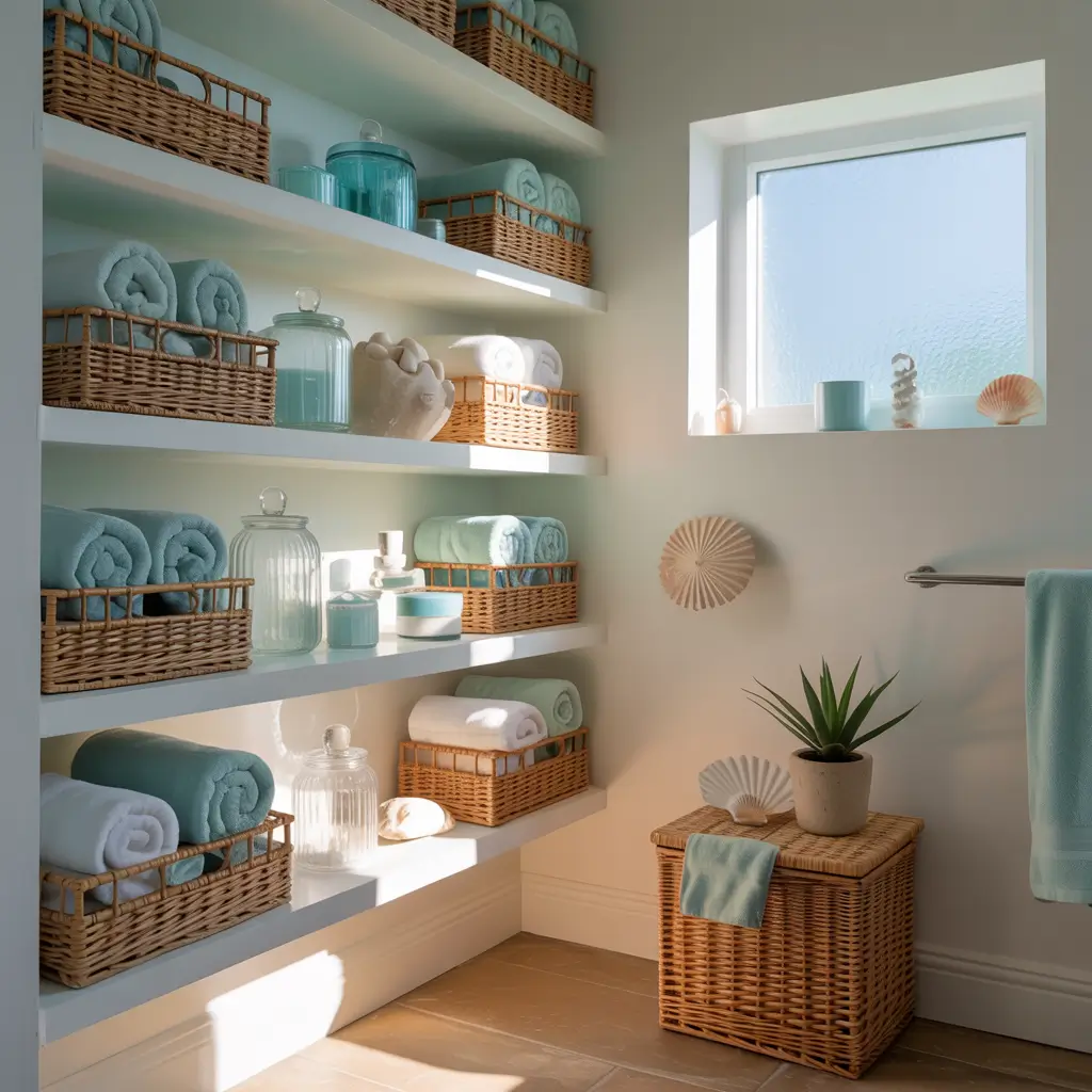 Real talk: beach style means nothing if you’re tripping over toilet paper rolls. Small coastal bathrooms need smart storage that doesn’t kill the vibe. I’ve mastered the art of hiding necessities in plain sight.