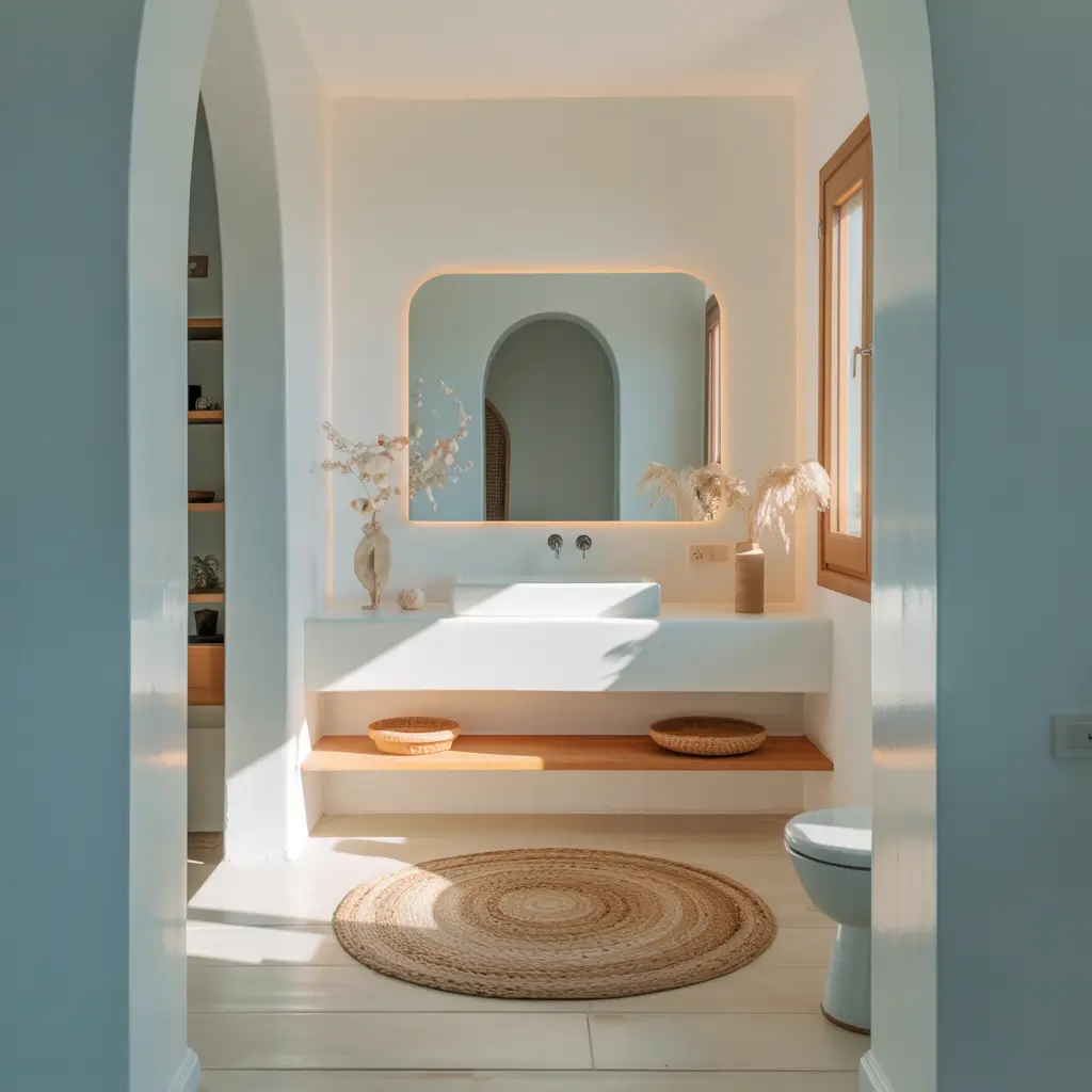 Who says beach style needs to be cluttered with shells and nets? Beachy minimalism combines coastal calm with clean lines, and honestly, it’s perfect for small bathrooms. Less stuff means more space to actually move around.